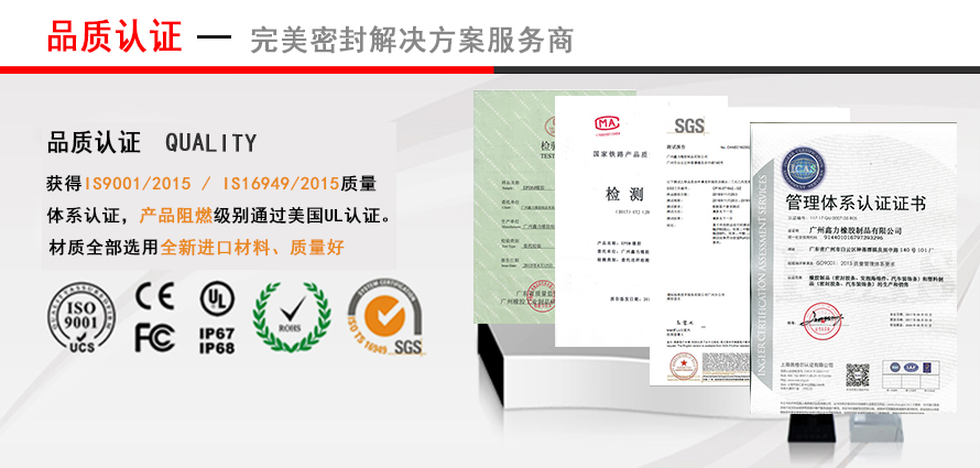 (3)廣州鑫力橡膠采用標(biāo)準(zhǔn)的生產(chǎn)管理及質(zhì)量管理體系,先后通過(guò)ISO9001、ISO14001、ISO/TS1694等各種認(rèn)證。